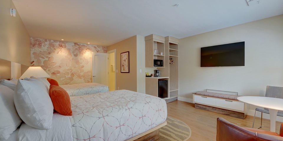 Our Parkview Accessible Room features two double XL beds, private bath, all the amenities, large HD TV, and free WiFi.